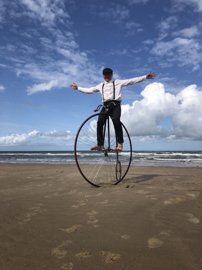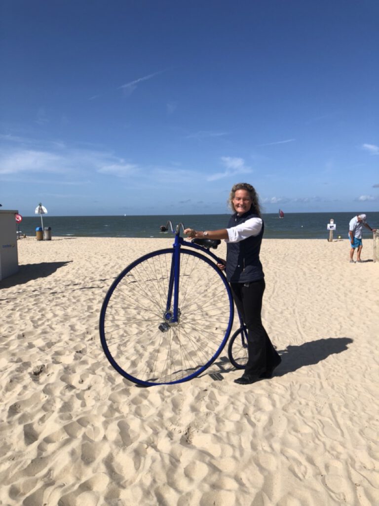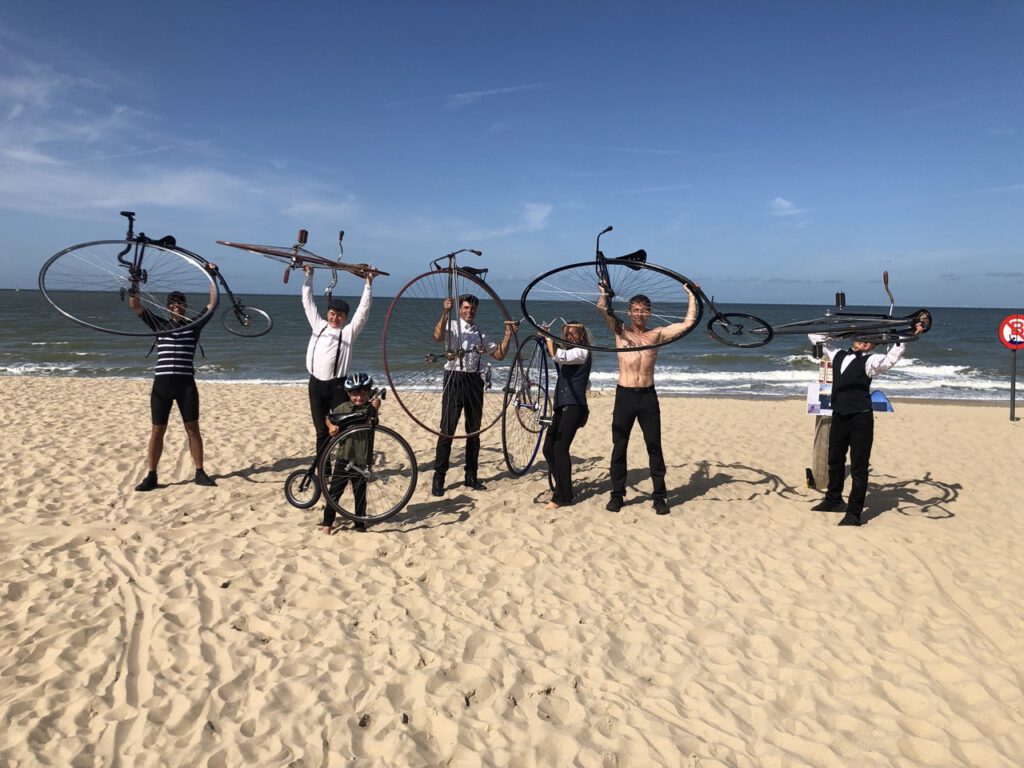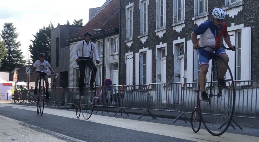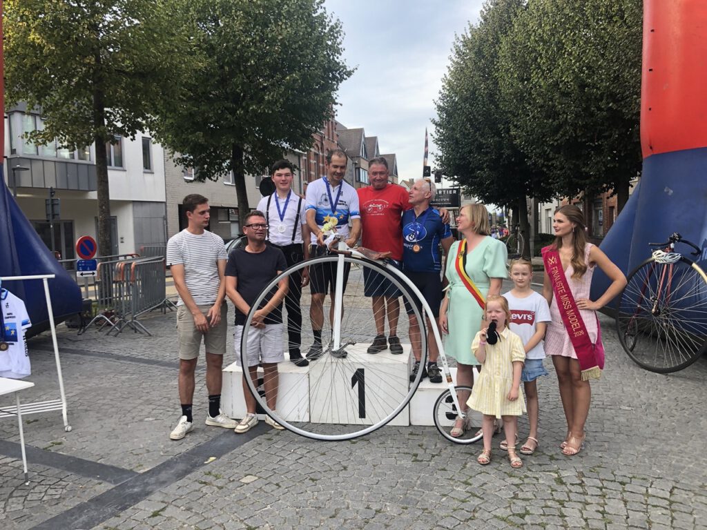 Am Abend, in der Dämmerung, erreichten wir endlich Oudenburg. Veranstalter Eric begrüßte uns herzlich. Unser „Campingplatz“ war ein Fußballfeld – mit Strom von den Nachbarn und Sanitäranlagen in den Turnhallen. Dort trafen wir auch andere Hochradfahrer, darunter den Tschechen Dušan Mihel mit seinem Freund Todd aus Colorado, den Deutschen René Seidenberg aus dem Sauerland sowie unsere Freunde Frank und Evi. Der erste Abend war ein gelungener Einstieg ins große Hochradtreffen.