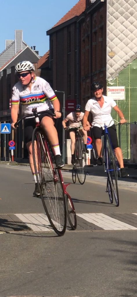 William fuhr mit und bekam viel Rücksicht – manchmal brauchte er eine kleine Pause. Die Strecke führte uns über Flüsse, Brücken und schöne Radwege bis zu Cafés, wo wir belgische Waffeln und Getränke genossen. Am Abend saßen wir alle gemeinsam auf dem Marktplatz von Oudenburg, aßen, plauderten und lachten – ein perfekter Tag vor den Meisterschaften.